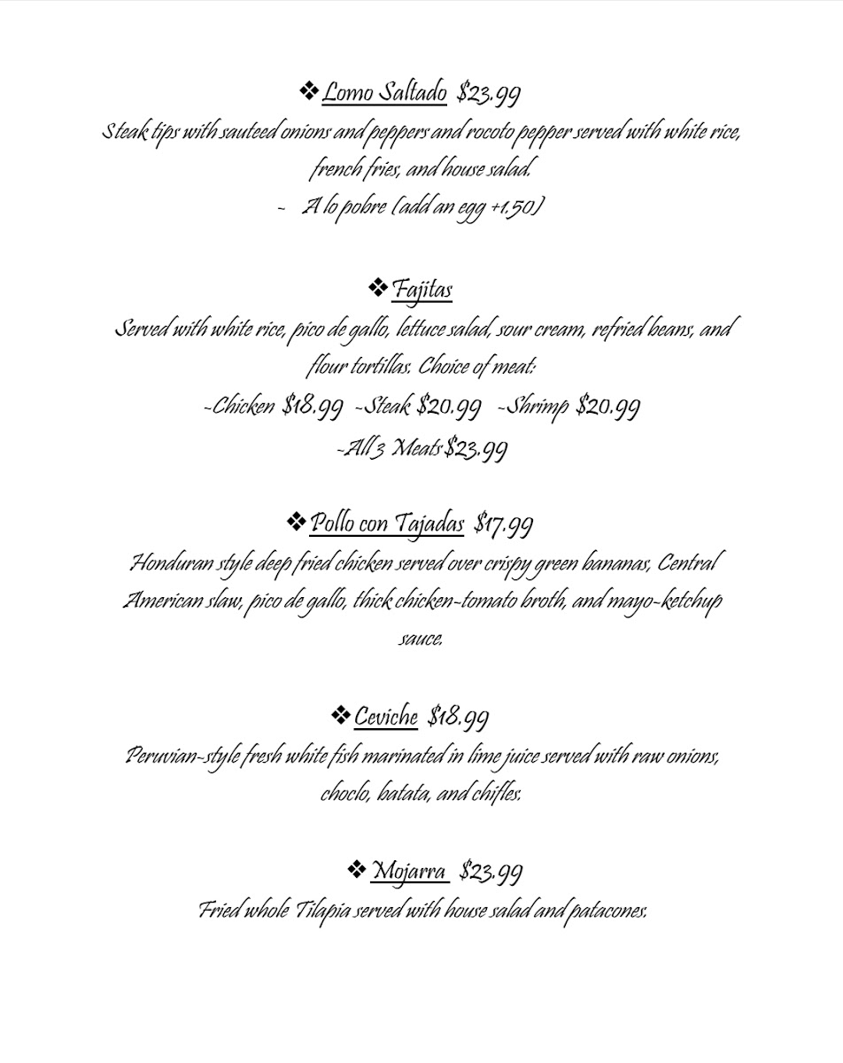 Honduran style deep fried chicken, served over crispy green bananas, central American slaw, pico de gallo, thick chicken-tomato broth and mayo-ketchup sauce.