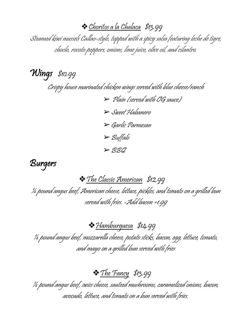 The Origen Bar And Grill is the perfect spot for anyone looking to enjoy a flavorful meal in a relaxed, inviting atmosphere. Whether you're craving a juicy steak, fresh seafood, or something a little lighter, the Origen Bar And Grill Menu has something for everyone. Start with appetizers that are perfect for sharing, like crispy calamari or savory sliders. For mains, the signature burgers, grilled to perfection, are a hit, but don't miss the delicious entrees like tender ribs or perfectly seared fish. Each dish is crafted with care, bringing out the best of local ingredients. The menu is designed to satisfy any appetite, and the warm, friendly service ensures that each visit is memorable. Whether you're here for a casual meal or a special evening out, Origen Bar And Grill delivers a dining experience that's both relaxed and delicious.